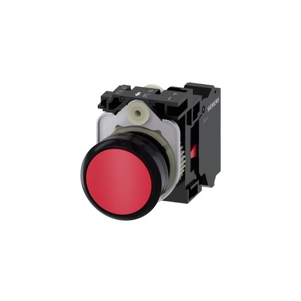 Pushbutton, 22 mm, round, plastic, red, pushbutton, flat, momentary contact type, with holder 1 NC, spring-type terminal, with laser labeling, inscription or symbol Customer-specific selection with SIRIUS ACT configurator CIN