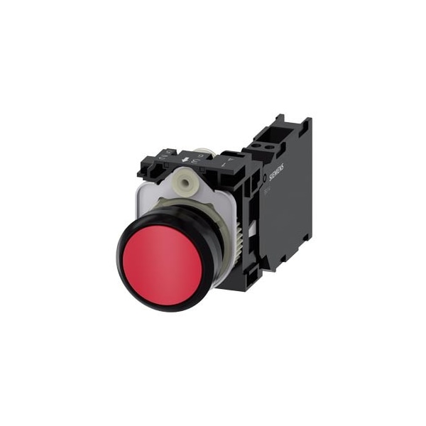 Pushbutton, 22 mm, round, plastic, red, pushbutton, flat, momentary contact type, with holder 1 NO+1 NC, spring-type terminal