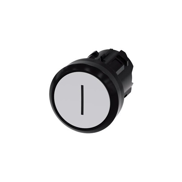 Pushbutton, 22 mm, round, plastic, white, inscription: I, pushbutton, flat, momentary contact type, customer-specific selection with SIRIUS ACT configurator CIN