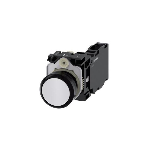 Pushbutton, 22 mm, round, plastic, white, pushbutton, flat, momentary contact type, with holder 1 NO+1 NC, screw terminal, with laser labeling, symbol number according to, ISO 7000 or IEC 60417