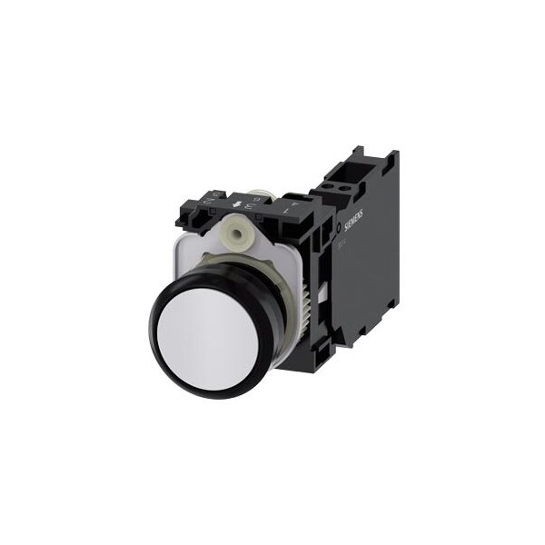 Pushbutton, 22 mm, round, plastic, white, pushbutton, flat, momentary contact type, with holder 1 NO+1 NC, spring-type terminal, with laser labeling, symbol number according to, ISO 7000 or IEC 60417