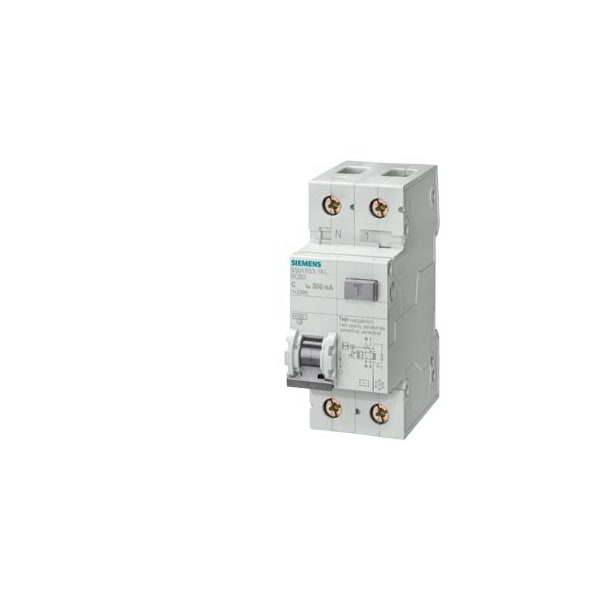 RCBO, 4.5 kA, 1-pole+N, type AC, 30 mA, C char, In: 6 A, Un AC: 230 V, N left, use of these devices is not permitted in all countries. Observe national installation regulations!