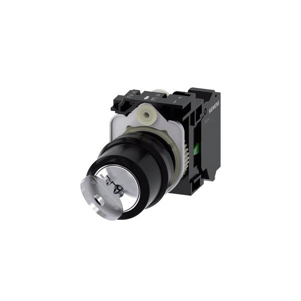 RONIS key-operated switch, 22 mm, round, plastic, lock number SB30, with 2 keys, 2 switch positions O-I, latching, 10:30h/13:30h, key removal O+I, with holder, 1 NO, spring-type terminal, possible special locks: SB31, 421, 455, with laser labeling, upper case and lower case, always upper case at the beginning of the word