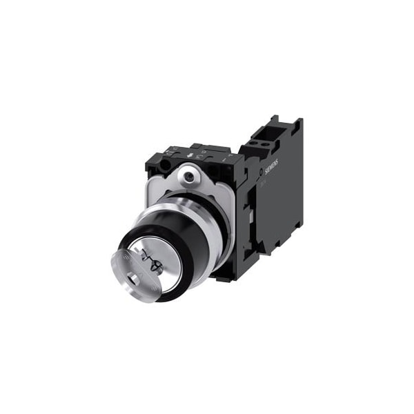 RONIS key-operated switch, 22 mm, round, metal, shiny, lock number SB30, with 2 keys, 2 switch positions O-I, latching, actuating angle 90°, 10:30h/13:30h, key removal O+I, with holder, 1 NO+1 NC, spring-type terminal, possible special locks: SB31, 421, 455 upper case and lower case, always upper case at the beginning of the word