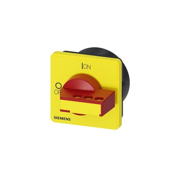 rotary operating mechanism, actuating lever red/yellow, defeatable, 66x66 mm, lockable in 0-position, for four-hole front mounting. Accessory for switch disconnector 3LD3