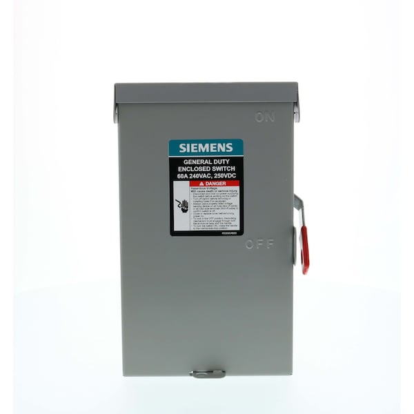 Safety Switch, Contact Form 3PST, Current Rating 60 A, Depth 7 in, Duty Standard, Enclosure Type Enclosed, Environment Indoor, For Fuse Class Class H, Class R, Class T, Height 10 in, Horsepower @ 240V AC 15 hp, Housing Material Steel, IP Rating Not Rated, Mounting Style Surface Mount, NEMA Enclosure Rating 1