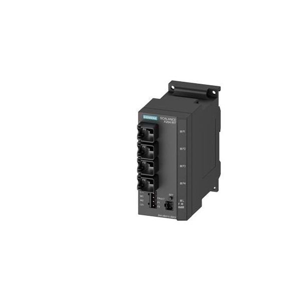 SCALANCE X204IRT, managed IE IRT switch, 4x 10/100 Mbps RJ45 ports, error signaling contact with set button, redundant power supply, PROFINET IO device, network management, Redundancy Manager integrated, incl. electron. manual on CD-ROM, C-PLUG optional