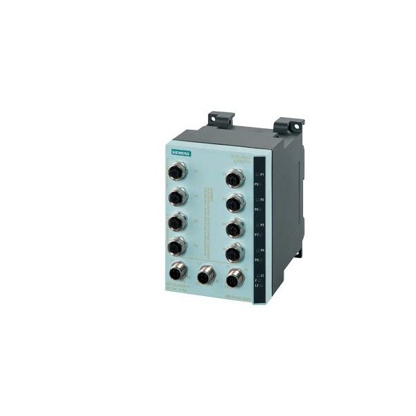 SCALANCE X208PRO, managed IE switch, 8x 10/100 Mbit/s M12 ports, IP65/67, LED diagnostics, error signaling contact, Redundant power supply, PROFINET IO device, network management, can be operated in redundant ring, dust caps, including electronic manual on CD-ROM, C-plug optional.