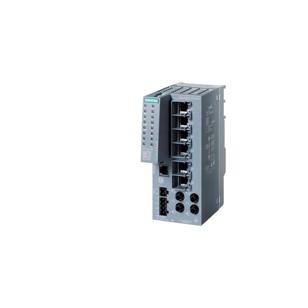 SCALANCE XC206-2 manageable Layer 2 IE switch, IEC 62443-4-2 certified, 6x 100 Mbit/s RJ45 ports, 2x 100 Mbit/s ST/BFOC ports, 1x console port, diagnostics LED, redundant power supply, temperature range -40 °C to +70 °C, assembly: DIN rail/S7 mounting rail/wall redundancy functions, office features RSTP, VLAN,..., PROFINET IO device, Ethernet/IP-compliant C-PLUG slot