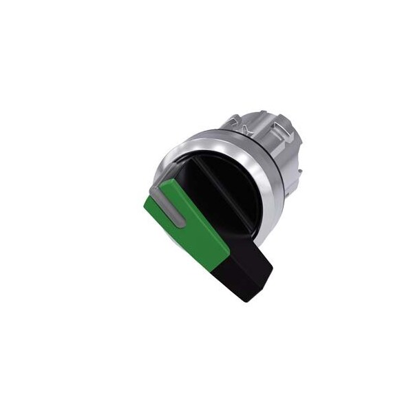 Selector switch, illuminable, 22 mm, round, metal, shiny, green