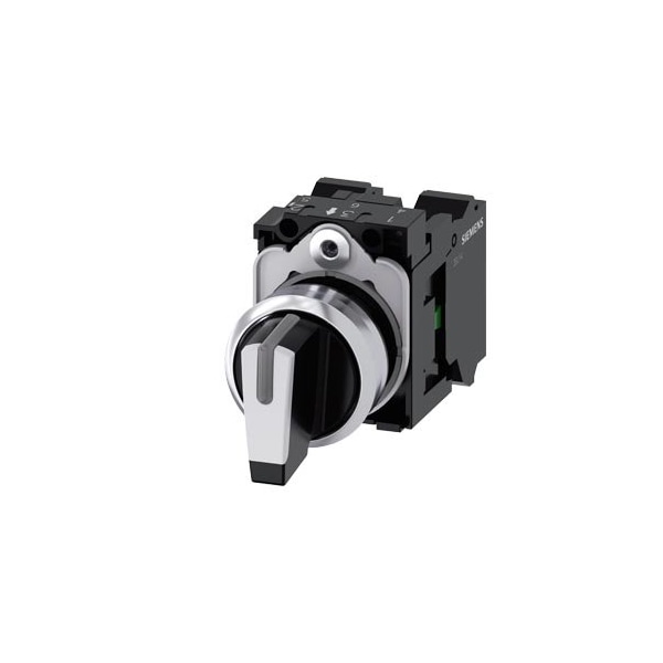 Selector switch, illuminable, 22 mm, round, metal, shiny, white
