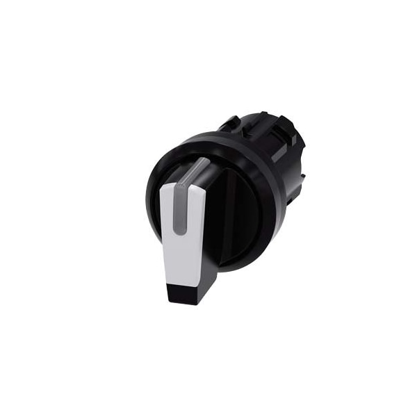 Selector switch, illuminable, 22 mm, round, plastic, white, selector switch, short, 3 switch positions I-OII, left latching, right momentary contact type, actuating angle 2x45°, 10:30h/12h/13:30h, with laser labeling, upper case