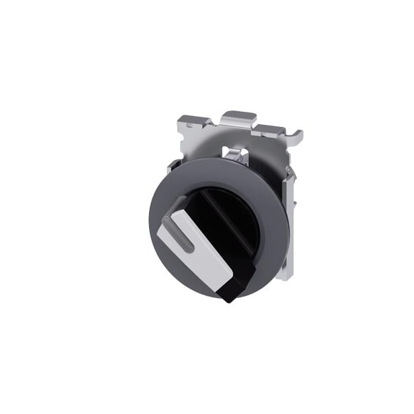 Selector switch, illuminable, 30 mm, round, Metal, matte, white, selector switch, short, front ring for flush installation, 2 switch positions OI, momentary contact type, Actuating angle 45°, 10:30h/12h, with laser labeling, lower case