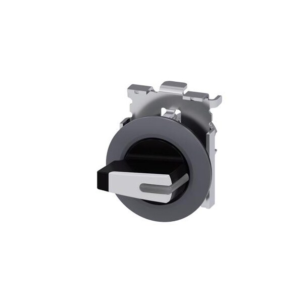 Selector switch, illuminable, 30 mm, round, metal, matte, white, selector switch, short, front ring for flush installation, 2 switch positions O-I, latching, actuating angle 90°, 13:30h/16:30h, with laser labeling, inscription or symbol customer-specific selection with SIRIUS ACT configurator CIN