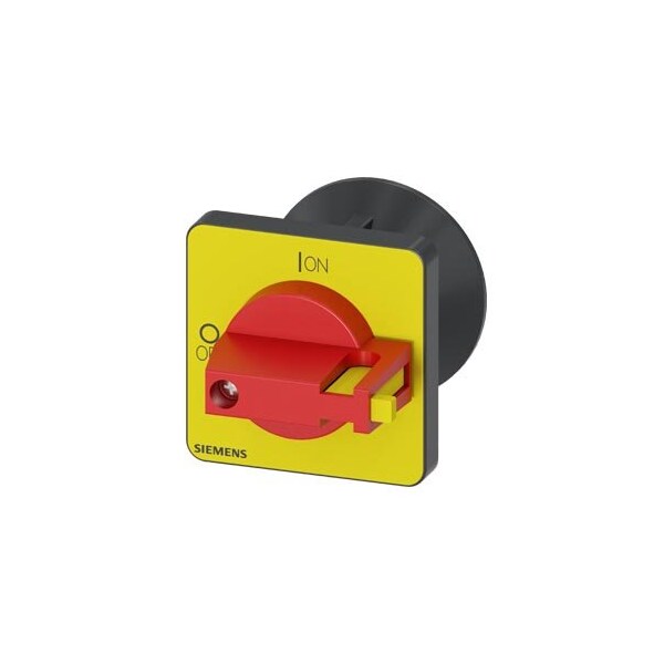 selector switch, red / yellow 48x48 mm Front plate mounting Central hole mounting 22.5mm with coupling part for shaft 6x6 mm, accessory for Load disconnector 3LD3