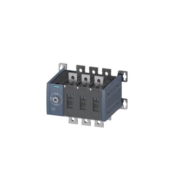 SENTRON, 3KC transfer switching equipment, manually operated, MTSE, size: 4, 3-pole, Iu: 630 A, Ue AC: 415 V, Ie at AC-33 B at 415 V: 500 A, Ie at AC-23 A at 690 V: 500 A, Screw mounting, front operating mechanism, at the left end, without handle, busbar connection
