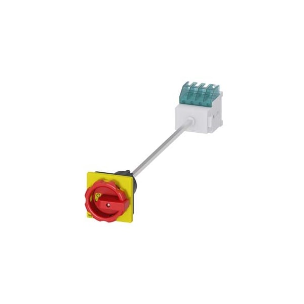 SENTRON, Switch disconnector 3LD, emergency switching-off switch, 4- pole, Iu: 16 A, operating power / at AC-23 A 400 V: 7.5 kW, floor mounting with door coupling, rotary operating mechanism, Red / yellow, 4-hole mounting of the handle