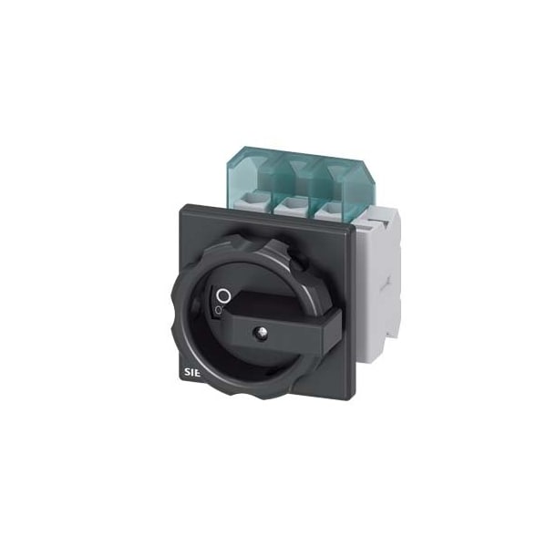 SENTRON, Switch disconnector 3LD, main switch, 3-pole, Iu: 25 A, Operating power / at AC-23 A at 400 V: 9.5 kW, front-mounted, 1 NC, 1 NO, rotary operating mechanism, black, 4-hole mounting of the handle