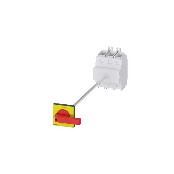SENTRON, Switch disconnector 3LD, emergency switching-off switch, 3- pole, Iu=250 A, operating power / at AC-23 A 400 V: 132 kW, floor mounting with door coupling, knob-operated mechanism, red/yellow, 4-hole mounting of the handle