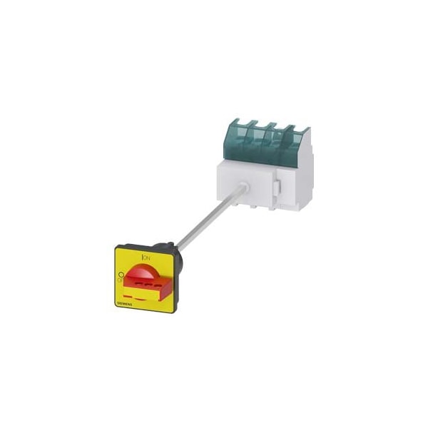 SENTRON, switch disconnector 3LD, EMERGENCY OFF switch, 4-pole, Iu: 63 A, Operating power / at AC-23 A at 400 V: 22 kW, floor mounting with door coupling, defeatable knob-operated mechanism, red/yellow, 4-hole mounting of the handle