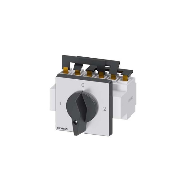 SENTRON, Switch disconnector 3LD, change-over switch, 3-pole, Iu: 63 A, Operating power / at AC-23 A at 400 V: 22 kW, front-mounted, knob-operated mechanism, black, 4-hole mounting of the handle