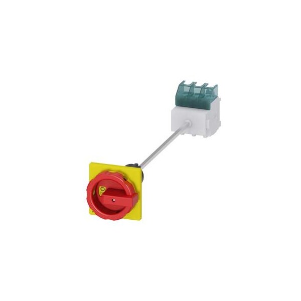 SENTRON, Switch disconnector 3LD, emergency switching-off switch, 3- pole, Iu: 63 A, operating power / at AC-23 A 400 V: 22 kW, floor mounting with door coupling, rotary operating mechanism, Red / yellow, central mounting 22.5 mm of the handle