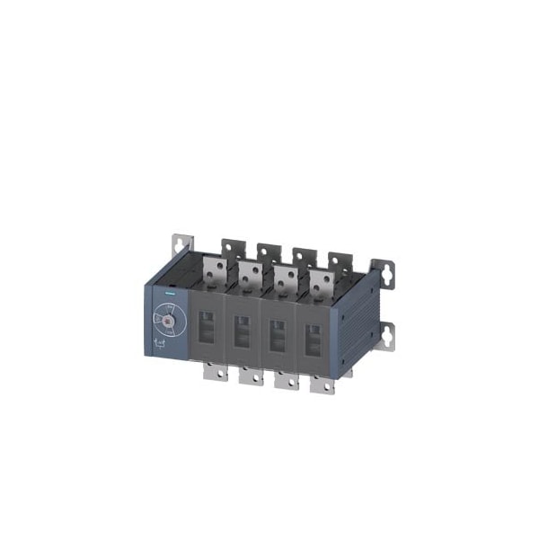 SENTRON, transfer switching equipment 3KC, manually operated, MTSE, size: 5, 4-pole, Iu: 1000 A, Ue AC: 415 V, Ie at AC-33 B at 415 V: 800 A, Ie at AC-23 A at 690 V: 800 A, screw mounting, front operating mechanism, at the left end, without handle, busbar connection