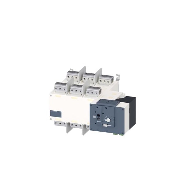 SENTRON, transfer switching equipment 3KC, remotely operated, RTSE, 3-pole, Iu: 3200 A, Ue AC: 415 V, Ie at AC-33 B at 415 V: 1250 A, screw mounting, motorized operating mechanism, at the right end, long handle, busbar connection
