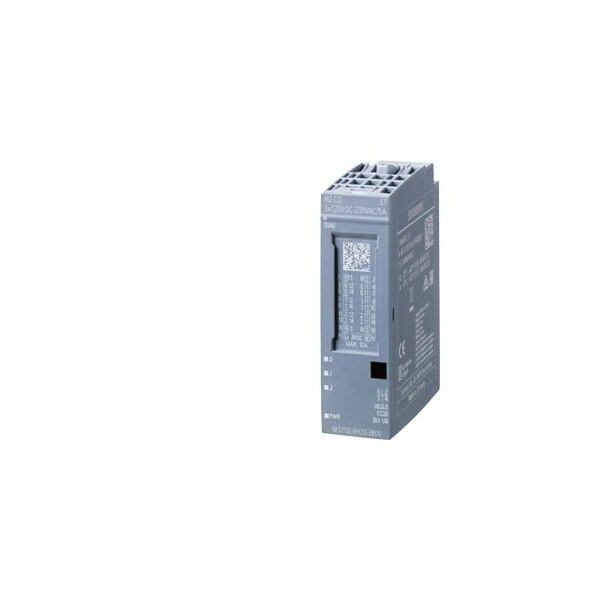 SIMATIC ET 200SP, relay module, RQ CO 3x 120V DC..230VAC/5A ST, 3 CO contacts isolated contacts, packing unit: 1 unit, suitable for BU type U0, color code CC20, substitute value output, module diagnostics for supply voltage