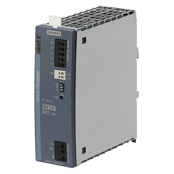 Stabilized Power Supply, Input Voltage 110 to 240V DC, 120 to 230V AC, Output Voltage 12V DC, Power Rating 144W, Output Amps 12, Mounting DIN Rail, Height 135 mm, Width 45 mm, Depth 125 mm, Series SITOP PSU6200, Hz 47 to 63 Hz, Phase - Electrical Single, IP Rating IP20, Status Indicator LED/DC OK Signal
