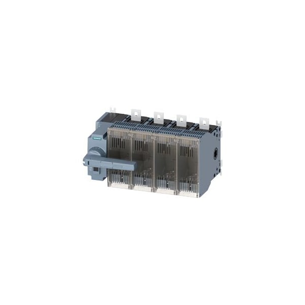 Switch disconnector with fuse 400 A, Size 4, 4-pole for LV HRC fuse Sz. 1 and 2 Front operating mechanism left Complete unit with direct operating mechanism gray flat terminal