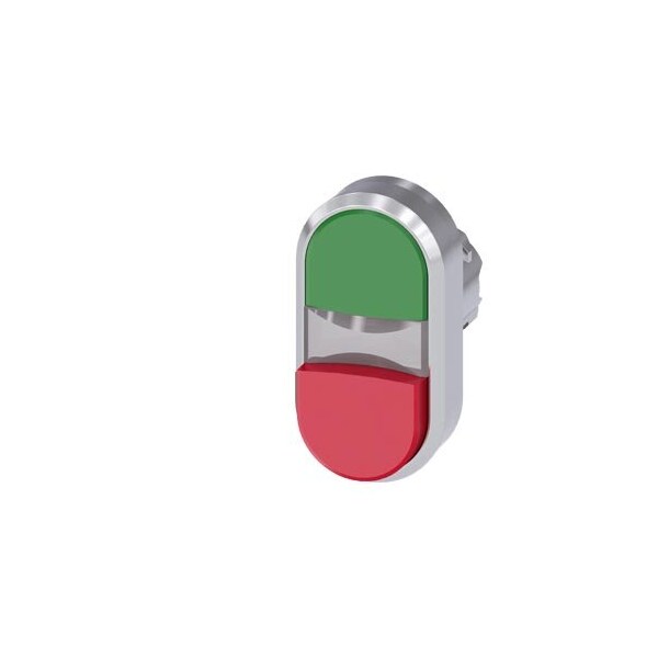 Twin pushbutton, 22 mm, round, metal, shiny, green, red, pushbuttons, flat and raised