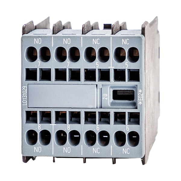 auxiliary switch, on the front, 2 NO + 2 NC, 22 U,.7/.8,.7/.8,.5/.6,.5/.6, current path: 1 NO leading, 1 NO leading, 1 NC lagging, 1 NC lagging, spring-loaded terminal, for contactors 3RT2 and contactor relays 3RH2