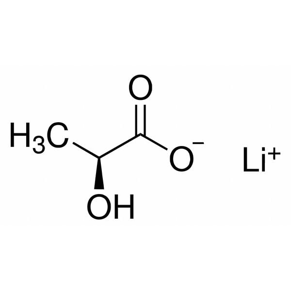 Lithium L-Lactate, Concentration Greater Than 98 Percent, CAS Number 27848-80-2, Molecular Weight 96.01, Chemical Formula C3H5LiO3, Chemical Container Material Clear Glass, Chemical Container Type Bottle, Chemical Container Size 500 g, Chemical Family Type Analytical Reagents, Shelf Life 24 mo