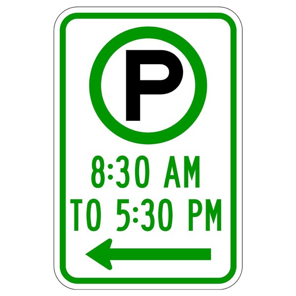 No Parking Symbol 8:30 AM-5:30 PM Right Arrow