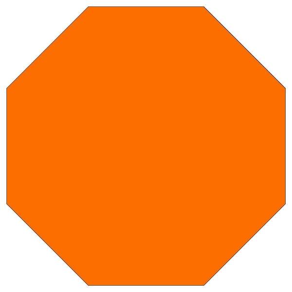 3MTM Diamond Grade FluorescentTM DG3 Reflective Orange Sheeting Series 4084 DG3 FLUOR 0.125 36" Octagon Sheeted Blank (FOR) Aluminum Thickness 0.125 Sign Spec's - Aluminum Grade & Temper: 5052-H38, Hole Punch Pattern: Federal Punch: 2 Holes T&B Centered, 3" inset, Hole Diameter: 7/16", Hole Punch Shape: Round, Radius Corners: OCTAGON, Aluminum Blank Surface: Reflective, Reflectivity Sheeted 1 or 2 Sides: 1 Side (Single Sided)
