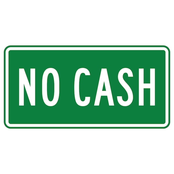 No Cash 24X12 Diamond Grade Cubed Reflective .063 Aluminum Thickness - Sign Spec's: MUTCD:, M4-16GW, Sign Category:, Bicycle Facility , Header/Legend:, NO CASH, Legend, Text Color:, White, Background Color:, Green, Aluminum Grade & Temper:, 5052-H38, Hole Punch Pattern:, Federal Punch: 2 Holes T&B Centered, 1.5 inset, Hole Diameter: 7/16 , Hole Punch Shape:, Round, Radius Corners: , 1.5