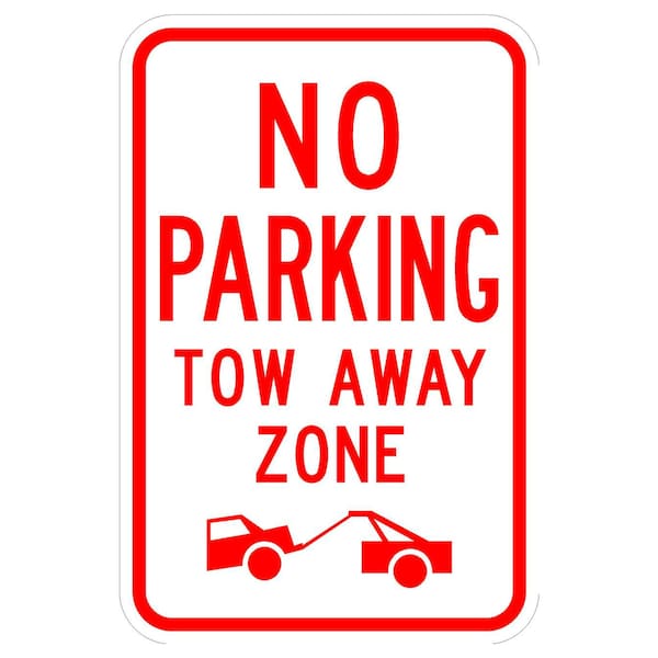 No Parking Tow Away Zone 12X18 Diamond Grade Cubed Reflective .063 Aluminum Thickness - Sign Spec's: MUTCD:, CUS00158, Sign Category:, Specialty, Header/Legend:, No Parking Tow Away ZoneSymbol , Legend, Text Color:, Red, Background Color:, White, Aluminum Grade & Temper:, 5052-H38, Hole Punch Pattern:, Federal Punch: 2 Holes T&B Centered, 1.5 inset, Hole Diameter: 7/16 , Hole Punch Shape:, Round, Radius Corners: , 1.5