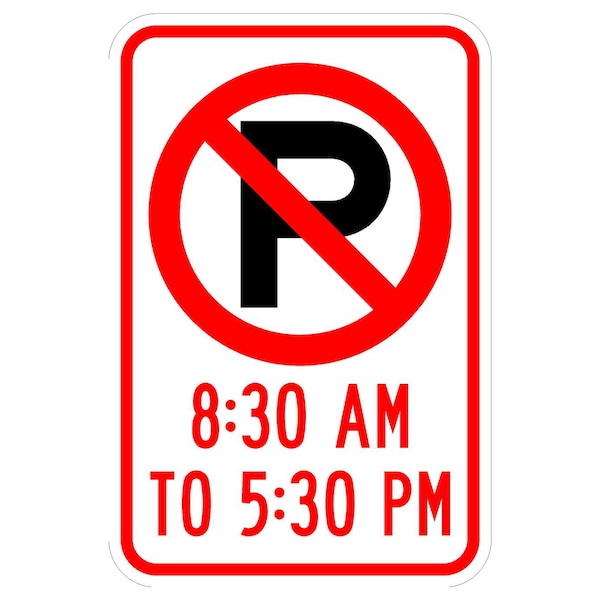 No Parking 830-530 12X18 Diamond Grade Cubed Reflective .100 Aluminum Thickness - Sign Spec's: MUTCD:, CUS00149, Sign Category:, Specialty, Header/Legend:, No ParkingSymbol 830-530, Legend, Text Color:, Red & Black, Background Color:, White, Aluminum Grade & Temper:, 5052-H38, Hole Punch Pattern:, Federal Punch: 2 Holes T&B Centered, 1.5 inset, Hole Diameter: 7/16 , Hole Punch Shape:, Round, Radius Corners: , 1.5