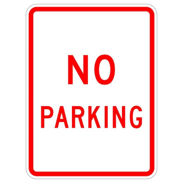 No Parking 24X30 Diamond Grade Cubed Reflective .100 Aluminum Thickness - Sign Spec's: MUTCD:, R8-3A, Sign Category:, Regulatory, Header/Legend:, No Parking, Legend, Text Color:, Black & Red, Background Color:, White, Aluminum Grade & Temper:, 5052-H38, Hole Punch Pattern:, Federal Punch: 2 Holes T&B Centered, 3 inset, Hole Diameter: 7/16 , Hole Punch Shape:, Round, Radius Corners: , 1.5