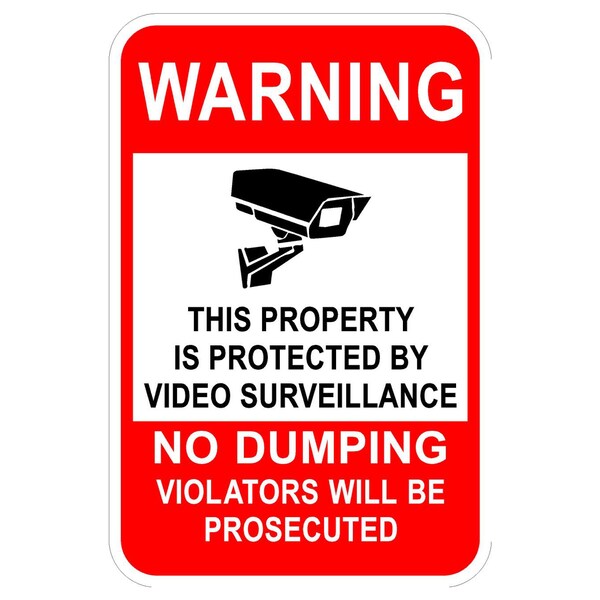 Warning This Property 12X18 Diamond Grade Cubed Reflective .125 Aluminum Thickness - Sign Spec's: MUTCD:, CUS00103, Sign Category:, Specialty, Header/Legend:, Warning Symbol This Property, Legend, Text Color:, Black & Red, Background Color:, White , Aluminum Grade & Temper:, 5052-H38, Hole Punch Pattern:, Federal Punch: 2 Holes T&B Centered, 1.5 inset, Hole Diameter: 7/16 , Hole Punch Shape:, Round, Radius Corners: , 1.5