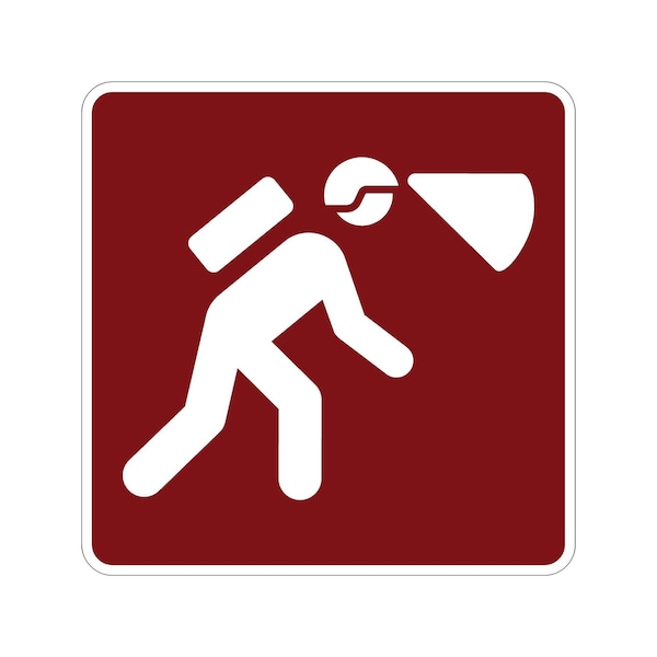 Spelunking/Caves 24X24 Diamond Grade Cubed Reflective .063 Aluminum Thickness - Sign Spec's: MUTCD:, RS-084, Sign Category:, Recreational , Header/Legend:, Spelunking/Caves, Symbol, Legend, Text Color:, White, Background Color:, Brown, Aluminum Grade & Temper:, 5052-H38, Hole Punch Pattern:, Federal Punch: 2 Holes T&B Centered, 3 inset, Hole Diameter: 7/16 , Hole Punch Shape:, Round, Radius Corners: , 1.5