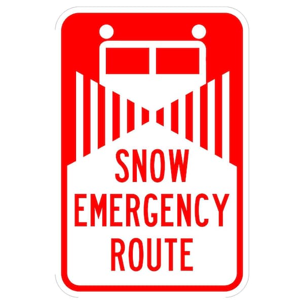 Snow Emergency Route 12X18 Diamond Grade Cubed Reflective .063 Aluminum Thickness - Sign Spec's: MUTCD:, CUS00081, Sign Category:, Specialty, Header/Legend:, Snow Emergency Route, Legend, Text Color:, Red, Background Color:, White, Aluminum Grade & Temper:, 5052-H38, Hole Punch Pattern:, Federal Punch: 2 Holes T&B Centered, 1.5 inset, Hole Diameter: 7/16 , Hole Punch Shape:, Round, Radius Corners: , 1.5