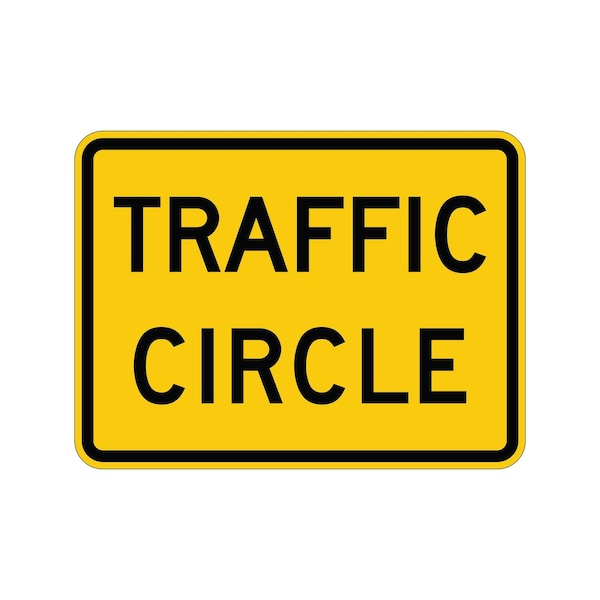Traffic Circle 24X18 Diamond Grade Cubed Reflective .063 Aluminum Thickness - Sign Spec's: MUTCD:, W16-12P, Sign Category:, Warning, Header/Legend:, Traffic Circle, Legend, Text Color:, Black, Background Color:, Yellow, Aluminum Grade & Temper:, 5052-H38, Hole Punch Pattern:, Federal Punch: 2 Holes T&B Centered, 3 inset, Hole Diameter: 7/16 , Hole Punch Shape:, Round, Radius Corners: , 1.5