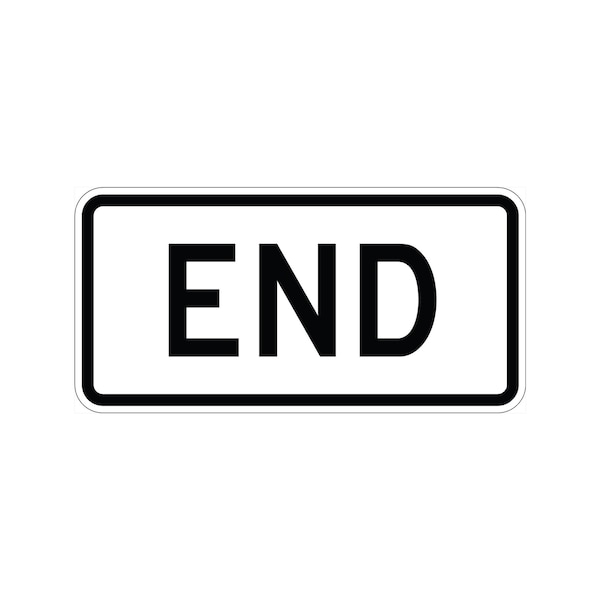 END 24X12 Diamond Grade Cubed Reflective .100 Aluminum Thickness - Sign Spec's: MUTCD:, M4-6, Sign Category:, Route Marker, Header/Legend:, END, Legend, Text Color:, Black, Background Color:, White, Aluminum Grade & Temper:, 5052-H38, Hole Punch Pattern:, Federal Punch: 2 Holes T&B Centered, 1.5 inset, Hole Diameter: 7/16 , Hole Punch Shape:, Round, Radius Corners: , 1.5