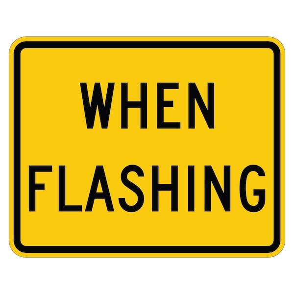 When Flashing 24X18 Diamond Grade Cubed Reflective .125 Aluminum Thickness - Sign Spec's: MUTCD:, W16-13P, Sign Category:, Warning, Header/Legend:, When Flashing, Legend, Text Color:, Black, Background Color:, Yellow, Aluminum Grade & Temper:, 5052-H38, Hole Punch Pattern:, Federal Punch: 2 Holes T&B Centered, 3 inset, Hole Diameter: 7/16 , Hole Punch Shape:, Round, Radius Corners: , 1.5