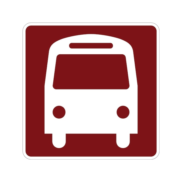 Bus Stop 24X24 Diamond Grade Cubed Reflective .063 Aluminum Thickness - Sign Spec's: MUTCD:, RS-031, Sign Category:, Recreational , Header/Legend:, Bus Stop, Symbol, Legend, Text Color:, White, Background Color:, Brown, Aluminum Grade & Temper:, 5052-H38, Hole Punch Pattern:, Federal Punch: 2 Holes T&B Centered, 3 inset, Hole Diameter: 7/16 , Hole Punch Shape:, Round, Radius Corners: , 1.5