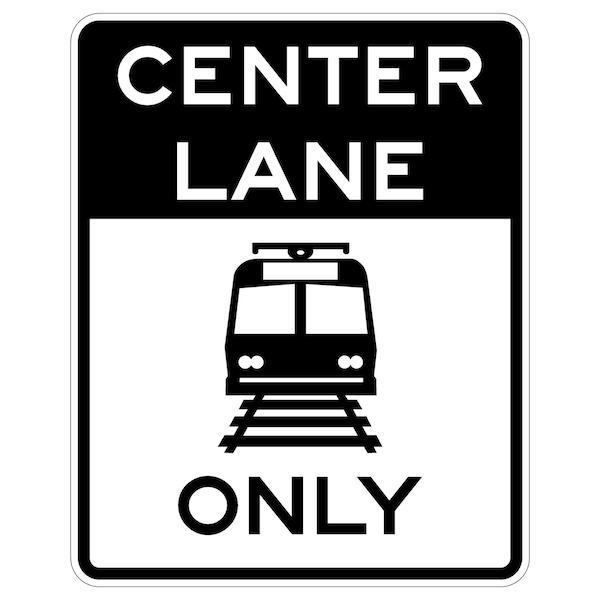 Center Lane, Train S Only 24X30 Diamond Grade Cubed Reflective .063 Aluminum Thickness - Sign Spec's: MUTCD:, R15-4c, Sign Category:, Regulatory, Header/Legend:, Center Lane, Train S Only , Legend, Text Color:, Black, Background Color:, White, Aluminum Grade & Temper:, 5052-H38, Hole Punch Pattern:, Federal Punch: 2 Holes T&B Centered, 3 inset, Hole Diameter: 7/16 , Hole Punch Shape:, Round, Radius Corners: , 1.5