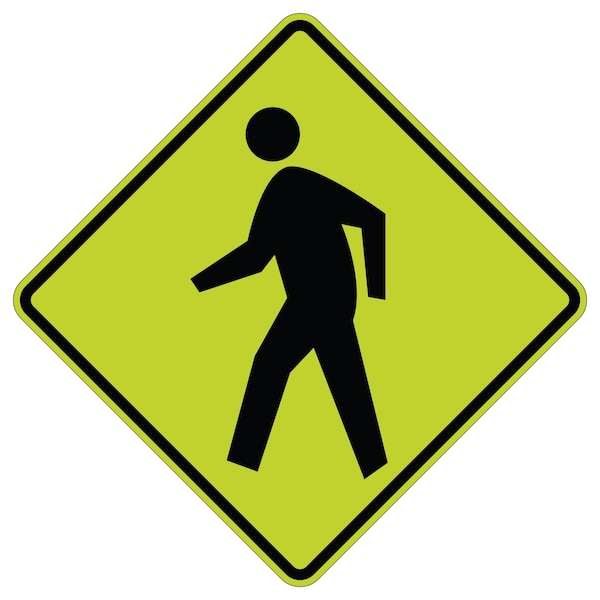 Pedestrian 30X30 Diamond Grade Cubed Fluorescent Reflective .063 Aluminum Thickness - Sign Spec's: MUTCD:, W11-2, Sign Category:, Warning, Header/Legend:, Pedestrian, Legend, Text Color:, Black, Background Color:, Fluorescent Yellow Green, Aluminum Grade & Temper:, 5052-H38, Hole Punch Pattern:, Federal Punch: 2 Holes T&B Centered, 30 Center, Hole Diameter: 7/16 , Hole Punch Shape:, Round, Radius Corners: , 1-7/8
