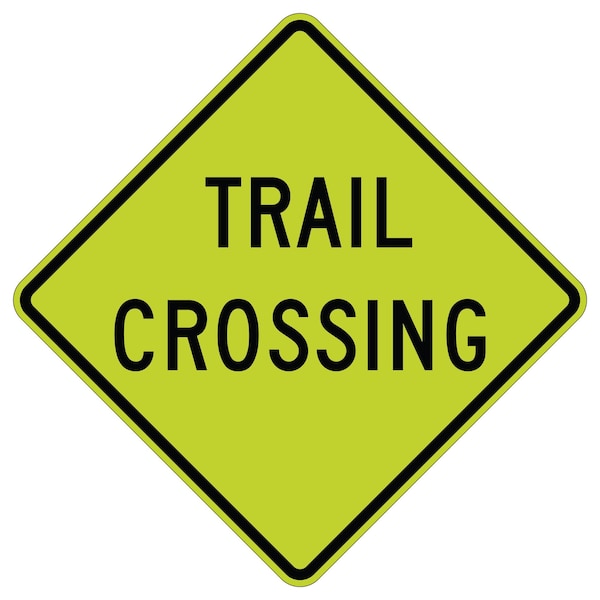 Trail Crossing 30X30 Diamond Grade Cubed Fluorescent Reflective .125 Aluminum Thickness - Sign Spec's: MUTCD:, W11-15a, Sign Category:, Warning, Header/Legend:, Trail Crossing, Legend, Text Color:, Black, Background Color:, Fluorescent Yellow Green, Aluminum Grade & Temper:, 5052-H38, Hole Punch Pattern:, Federal Punch: 2 Holes T&B Centered, 30 Center, Hole Diameter: 7/16 , Hole Punch Shape:, Round, Radius Corners: , 1-7/8